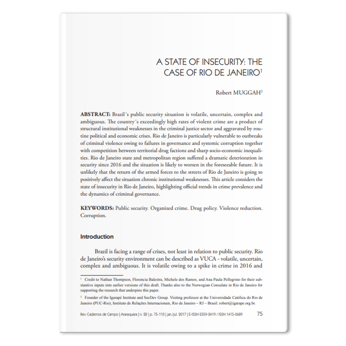 (Em inglês) Este artigo considera o estado de insegurança no Rio de Janeiro, destacando as tendências oficiais no predomínio do crime e a dinâmica da governança criminal.
