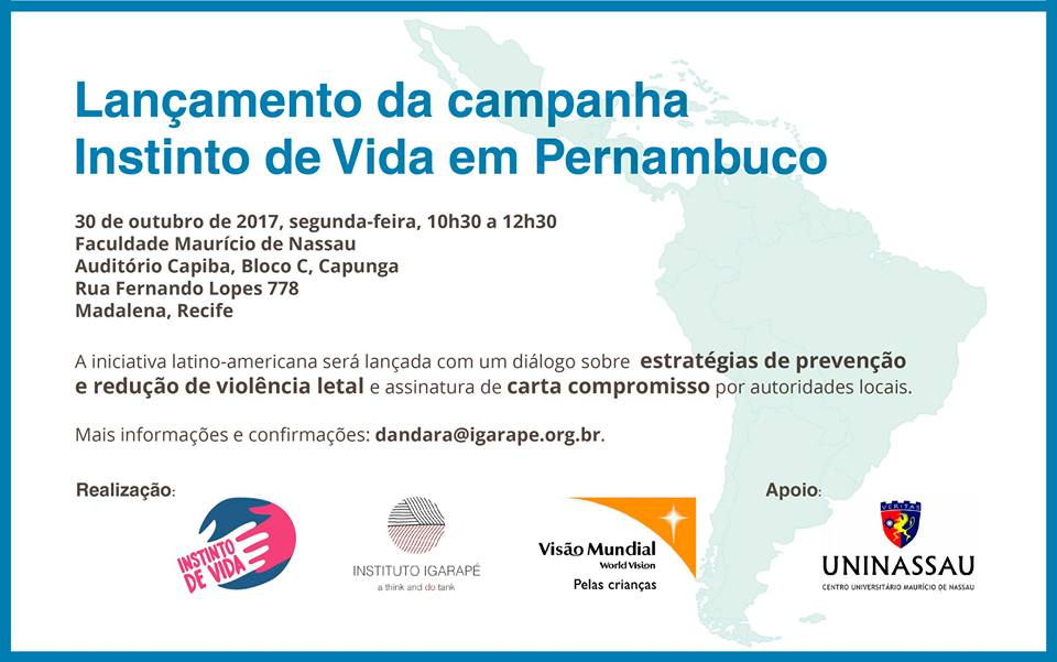 A iniciativa será lançada em Recife no próximo dia 30 de outubro (segunda-feira), às 10h30, na Faculdade Maurício de Nassau, com a presença de autoridades, especialistas e representantes da sociedade civil, em evento organizado pelo Instituto Igarapé, baseado no Rio de Janeiro, e pela Visão Mundial, que tem escritório em Recife. Na ocasião, será realizado um diálogo sobre estratégias relacionadas à redução de homicídios, com participação de Ilona Szabó, diretora executiva do Instituto Igarapé, e Aline Kerber, diretora executiva do Instituto Fidedigna (Rio Grande do Sul). O objetivo é estimular a adesão de autoridades e cidadãos em relação aos valores e metas da campanha.