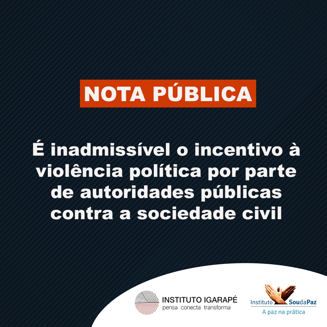 Os Institutos Igarapé e Sou da Paz vêm a público repudiar as agressões proferidas pelo deputado federal Eduardo Bolsonaro durante uma manifestação, em 9 de julho, de um grupo que defende o armamento da população brasileira. O deputado, filho do presidente da República, de maneira incompatível com o decoro exigido pelo cargo que ocupa, ofendeu instituições que trabalham há décadas para promoção da segurança pública e do controle responsável de armas e munições no Brasil.